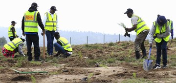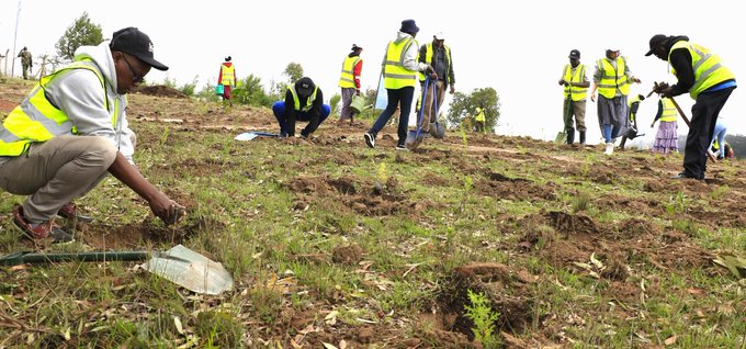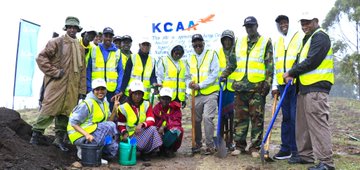 KCAA staff from Poror Radar station in Samburu County, led by Officer in Charge James Shikoba, Kenya Forest Service led by Assistant the Authority committed to contributing to the government's goal of reforestation by planting 15 billion trees by 2032.